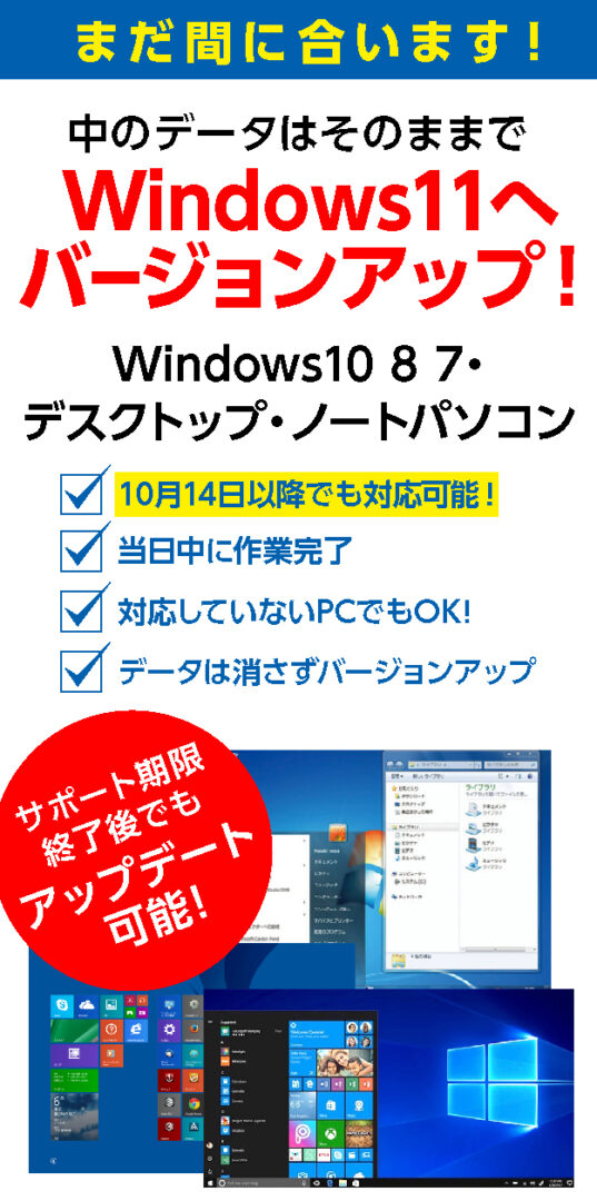 Windows XPやWindows 7など、サポートが終わった古い機種でも、当店なら修理できることがあります。また、ワープロも修理可能な場合がございますので、ご年配の方もどうぞご相談ください。